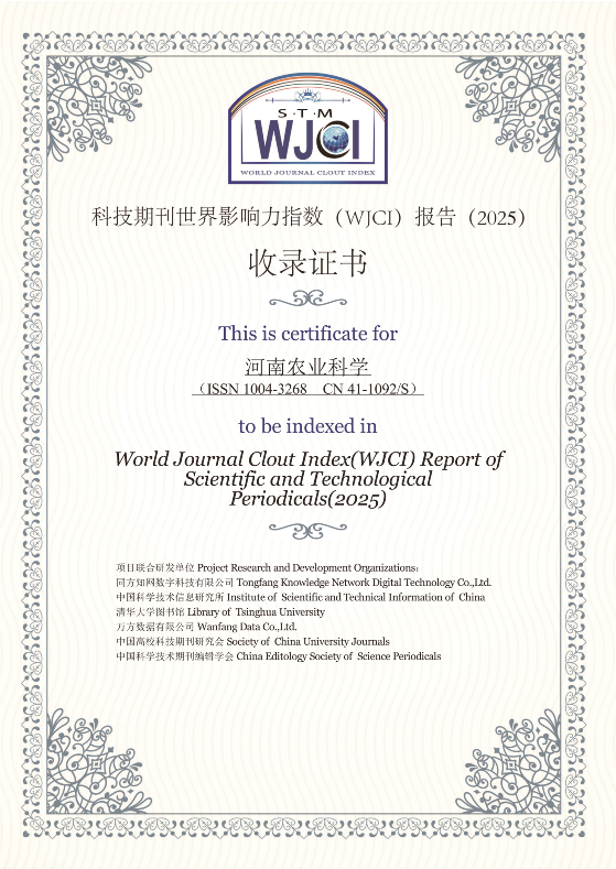 《WJCI报告》是由中国科学技术信息研究所、《中国学术期刊(光盘版)》电子杂志社有限公司、清华大学图书馆、万方数据有限公司、中国高校科技期刊研究会、中国科学技术期刊编辑学会联合发布的期刊评价报告,能够充分体现世界期刊同台竞技结果,入选期刊均被认为是具有地区代表性和学科代表性的优秀期刊。《WJCI报告(2025)》经过严格评议,收录了全球15274种科技期刊,其中中国期刊1906种。《河南农业科学》的连续入选标志着国际影响力和学术影响力的持续提升。