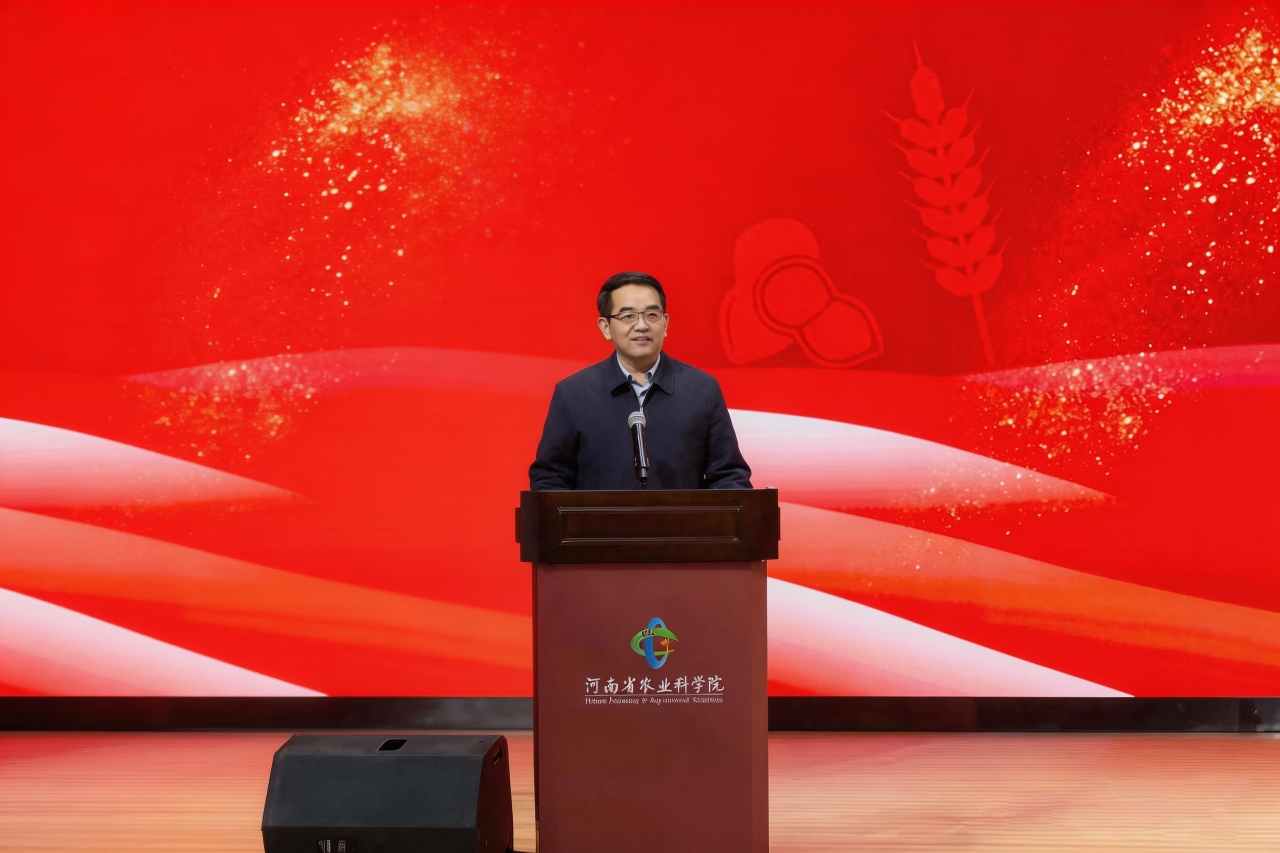 院党委书记孙巍峰致新年贺词,全面回顾“十四五”时期及2025年我院在农业科技创新、成果转化推广、人才队伍培养等领域取得的丰硕成果,向全体农科人及默默支持我院工作的职工家属致以诚挚感谢和新春祝福。他号召全院上下,2026年继续秉承“求实创新服务三农”理念,踔厉奋发、勇毅前行,以更实作风、更硬举措投身农业科研工作,为河南农业强省建设贡献更多农科力量。