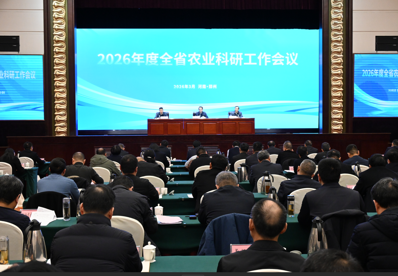 3月5日至6日,2026年度全省农业科研工作会议在黄河迎宾馆召开。院领导周卫、孙巍峰、王强、韩启忠、李秀杰出席会议。18个省辖市级农科院、29个县(市、区)农科所(试验站)、3个省农科院分院,河南种业集团、国家生物育种产业创新中心、神农种业实验室,以及院直单位主要负责同志参加会议。