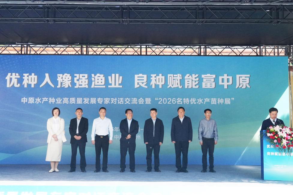 4月17日,中原水产种业高质量发展座谈会暨2026“名特优水产苗种进河南”系列活动在郑州启动。院党委委员、副院长韩启忠出席启动仪式并致辞。省农机农垦发展中心党委书记、主任张金龙,省种业集团党委书记、董事长赵博出席。